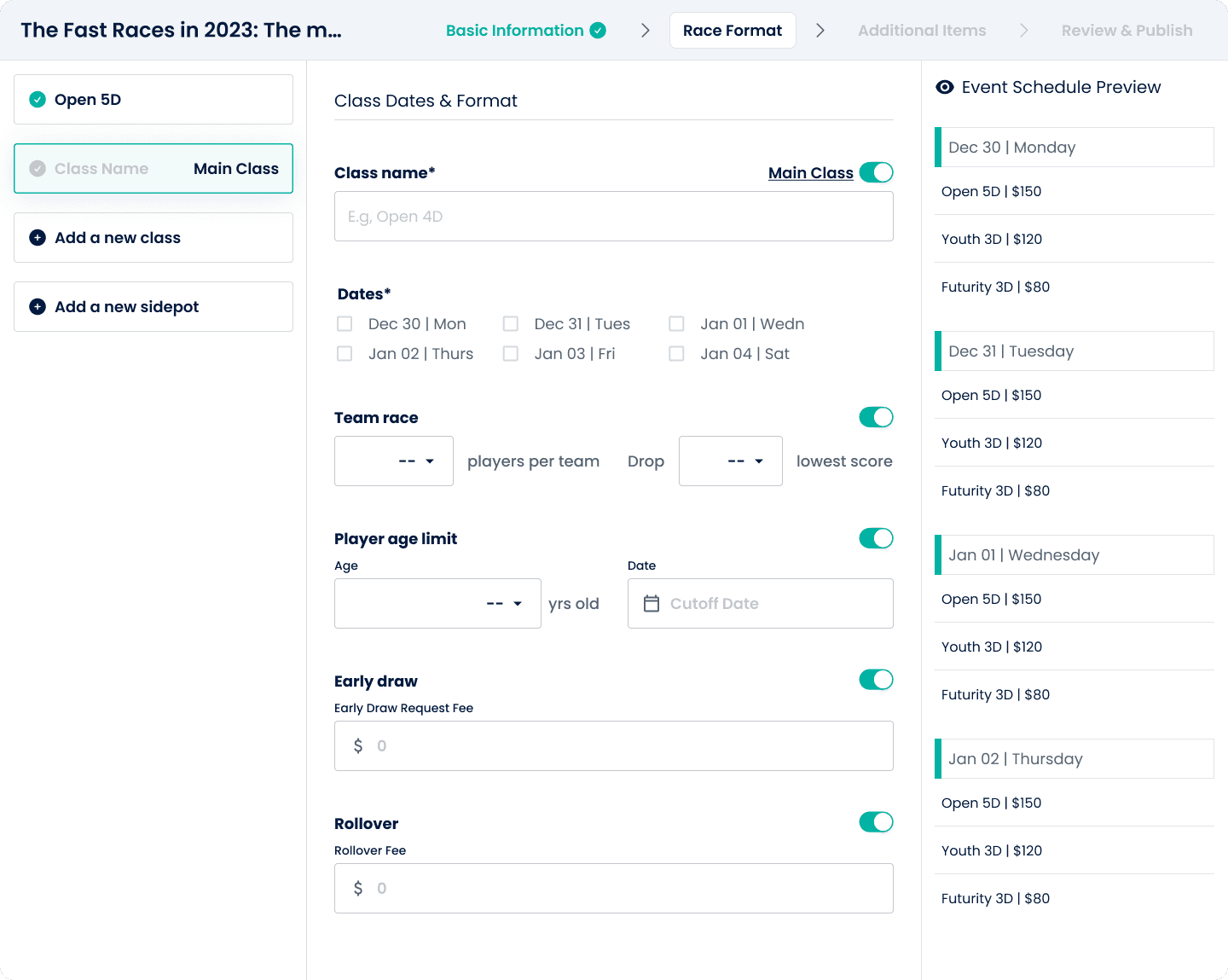 "I just want to quickly find the schedule, check my race class, and see what the payouts are."